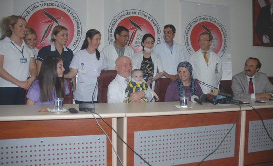 Doğuştan ince bağırsağı çalışmayan 9 aylık Hüseyin Yiğit, Opr. Dr. Cezmi Karaca, Opr. Dr. Selçuk Kılınç ve ekibi tarafından gerçekleştirilen ameliyat ile sağlığına kavuştu. Denizli'de organları bağışlanan bir kadın hastanın 100 santimetre uzunluğundaki ince bağırsağı nakledilen Hüseyin Yiğit, basın mensuplarının karşısına çıktı. Türkiye ve dünyada ilk kez İzmir Tepecik Hastanesi’nde gerçekleşen kök hücreden ince bağırsak nakli ile tıp literatürüne giren ve 17 Mayıs tarihinde ameliyat olan Hüseyin bebek 55 gündür hiçbir sağlık sorunu da yaşamadı. Normal bir insan gibi ağız yolu ile beslenmesine devam eden Hüseyin bebeğin bu ameliyatı yurtdışında olması halinde 600 bin dolar ödemek zorunda kalacağını belirten doktorlar, “Biz Hüseyin’e kendi aramızda 1 milyon dolarlık bebek diyoruz. Biliyoruz ki bu ameliyatın ardından Türkiye’ye bu konu hakkındaki talep de artacak” dedi.