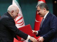 Türkiye-İran arasında sağlık ve tıp alanlarında işbirliği anlaşması imzalandıİki ülke arasında beşincisi düzenlenen YDİK toplantısı kapsamında Sağlık Bakanı Dr. Fahrettin Koca ve İran Dışişleri Bakanı Muhammet Cevat Zarif, sağlık ve tıp alanlarında mutabakat zaptına imza attı.21 Aralık 2018 Cuma 15:21SAĞLIK BAKANLIĞI