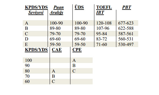 Son güncelleme tarihinden önce sonuç belgelerinin alınmış olduğu sınavlar için sonuç belgesinde sınavın yapıldığı tarihin yazılı olması ve 6114 sayılı Yasanın yürürlüğe girmesinden sonra alınmış olması durumunda, sınavın yapıldığı tarih itibari ile geçerli eşdeğerlik tablosu uygulanacaktır.