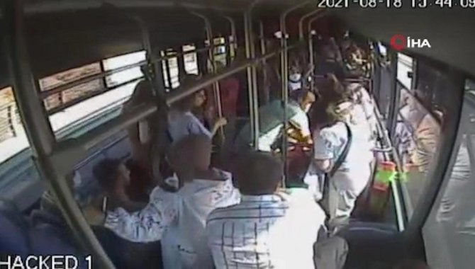 Yaşananlar ise otobüsün güvenlik kamerasınca kaydedildi.