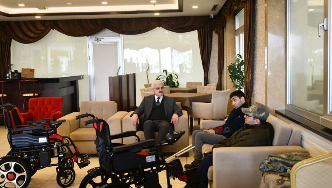 Kahramanmaraş merkezli 6 Şubat'ta yaşanan depremlerin ardından Bolu'ya gelen engelli depremzede kardeşlere Bolu Valiliği akülü tekerlekli sandalye hediye etti.