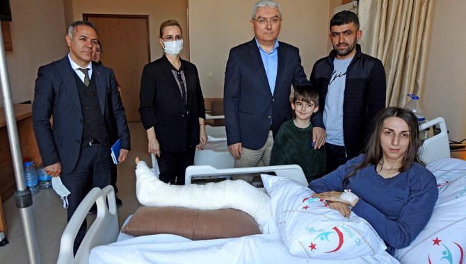 Hatay'da, enkaz altından çocukları ile birlikte eşi tarafından kurtarılan ve bacağında parçalı kırık olan depremzede, Çeşme Alper Çizgenakat Devlet...