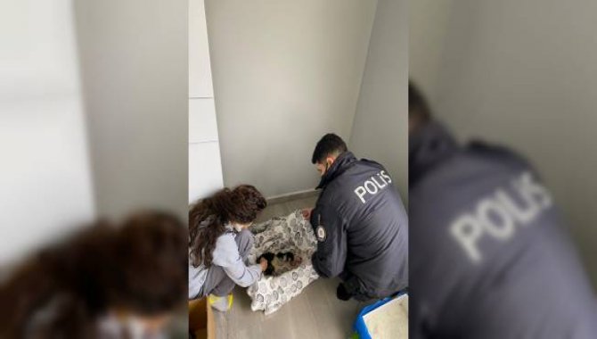 İlçe Emniyet Müdürlüğü Çevre Doğa ve Hayvanları Koruma Amirliği biriminde görevli polislerle gelen baba, kızıyla kedinin doğum yapmasına yardımcı oldu.