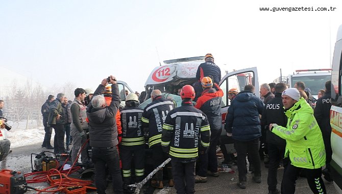 ERZURUM'DA AMBULANSLARIN KARIŞTIĞI İKİ KAZADA 6'SI SAĞLIK ÇALIŞANI 8 KİŞİ YARALANDI