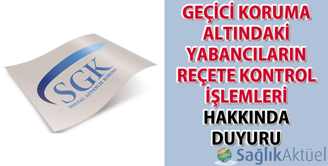 Sosyal Güvenlik Kurumu Başkanlığı tarafından Geçici Koruma Altındaki Yabancıların Reçete Kontrol İşlemleri hakkında duyuru yayımlandı.