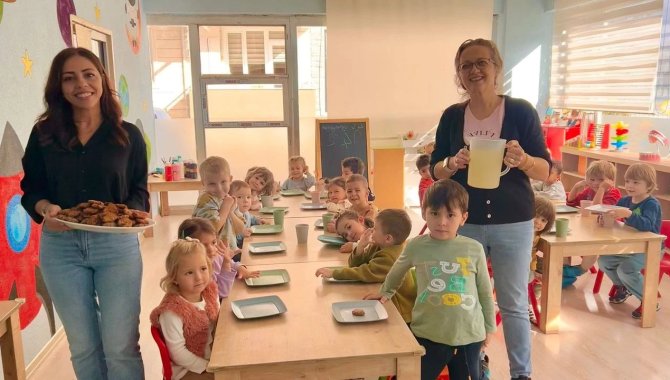 Öğrencilere eğitim sonunda sağlıklı kurabiyeler ve taze sıkılmış meyve suları ikram edildi.