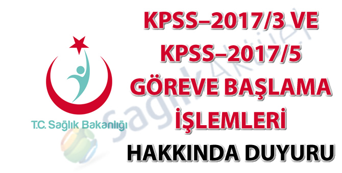 Sağlık Bakanlığı Yönetim Hizmetleri Genel Müdürlüğü tarafından KPSS–2017/3 ve KPSS–2017/5 göreve başlama işlemleri hakkında duyuru yayımlandı.