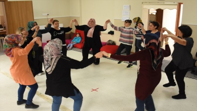 Yaklaşık 2,5 yıldır çocukları merkezden istifade eden 16 kadın, 2 ay önce gönüllü eğitmenlerin desteğiyle farklı yörelere ait halk oyunlarını öğrenmeye başladı.