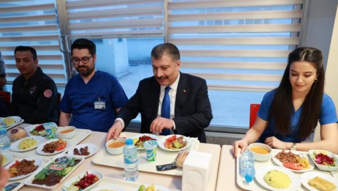 Sağlık Bakanı Fahrettin Koca, Adıyaman Eğitim ve Araştırma Hastanesi yemekhanesinde sağlık çalışanlarıyla iftar yaptı.