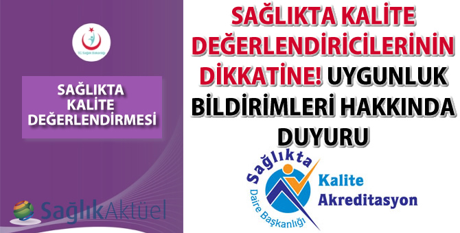 SAĞLIKTA KALİTE DEĞERLENDİRİCİLERİNİN DİKKATİNE! UYGUNLUK BİLDİRİMLERİ HAKKINDA DUYURU