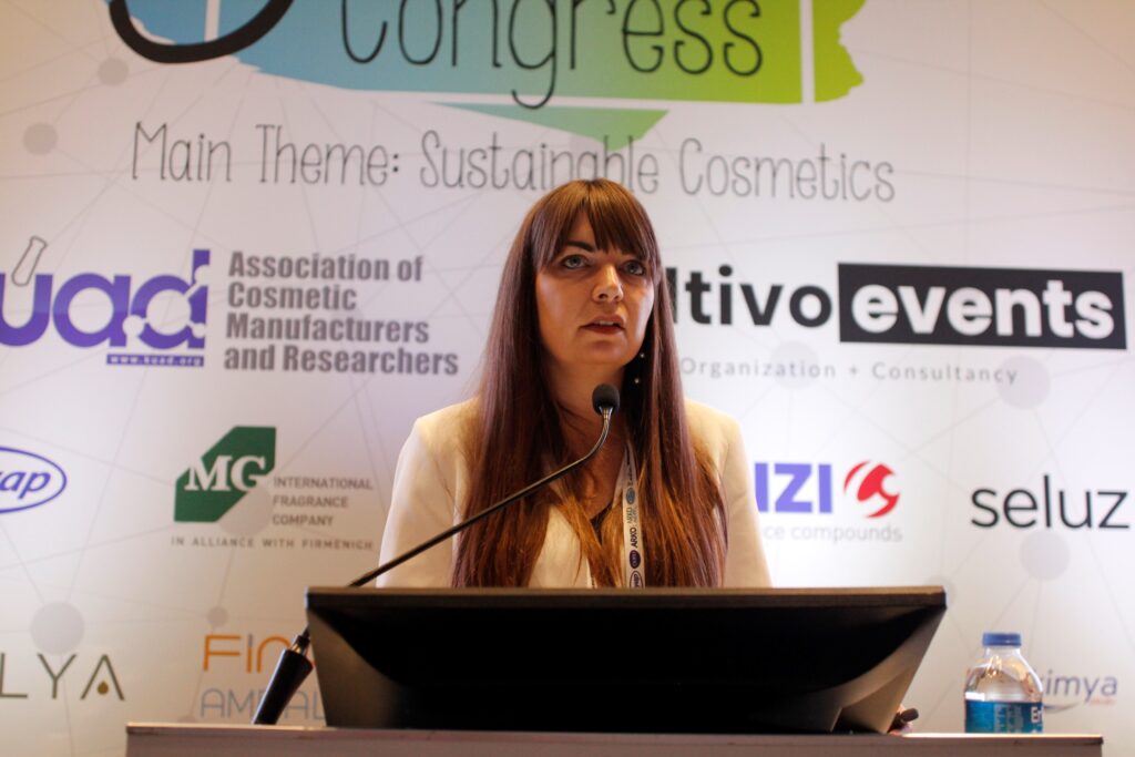 Doğal orijinli cilt parlatıcı içerikli ürünler hakkında sunum yapan Hücre ve Doku Kültürü Laboratuvar Bakanı Katarzyna Gawel Beben, “Dünya’nın yüzde 90’ı cilt anlamında lekeler, çiller gibi estetik sorunlarla karşı karşıya kalıyor. Küresel analizlere bakıldığında dünya nüfusunun yaklaşık yüzde 15’i bu konuda oldukça büyük yatırımlar yapıyor. Ayrıca, kozmetikte artan bitki kullanımı en önemli cilt açma kozmetiği bitki özütlerinden elde ediliyor. Bu doğrultuda, yapılan çalışmalar devam ederken kozmetik ürün üretimlerinde hayvanlar üzerindeki deneylere ciddi yasaklar gelirken şu an Avrupa Birliği’nde hayvan testleri tamamen yasaklandı” dedi.