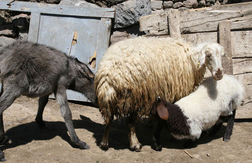 Kendi kuzusunu ve sıpayı birlikte emziren koyun, ilk kez böyle bir olay gören vatandaşları hayretler içerisinde bıraktı