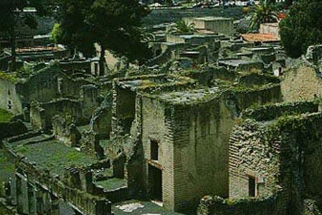 İsis tapınağı, tiyatro... Hepsinin de yaşadıkları son anları dondurulmuş bir şekilde duruyor. Yazıcı dükkânındaki balmumu tabletler, kitaplıktaki papirüs tomarları, hamamlarda kaşağılar, meyhane tezgâhlarında kadehler ve son müşterilerin bıraktıkları paralar…