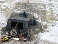Kayganlaşan yoldan çıkan lüks bir Mercedes cipte bulunan 3 kişi, donmuş göle uçtu.