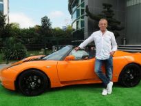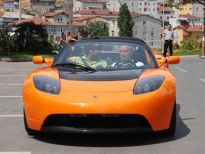 Ali Ağaoğlu’nun satın aldığı Türkiye’nin ilk elektrikli otomobili Tesla Roadster trafiğe çıkmak üzere gün sayıyor. Ağaoğlu Şirketler Grubu’nun genel merkezinde basına tanıtılan ve henüz geçici plaka alan araç, ruhsat işlemlerinin tamamlandıktan sonra trafiğe çıkacak.
