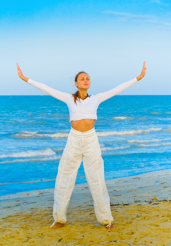 Bu ayakta duruş pozisyonunda gözler açık, tek bir noktada sabit, göz kasları, ağız ve boğaz yumuşak olmalı. Nefes alırken nefesin izlediği yolu karına kadar takip edin. Bu pozisyonda 8-16 nefes boyunca durun. Faydası: Nefesi yavaşlatmak, dikkati keskinleştirmek ve zihni sakinleştirmek için ayakta yapılan bir meditasyon pozu. Bu pozda, nefes alma sürecine dâhil olan derin karın kasları; iç organlara masaj yapmaya, sindirimi düzenlemeye yardımcı oluyor.