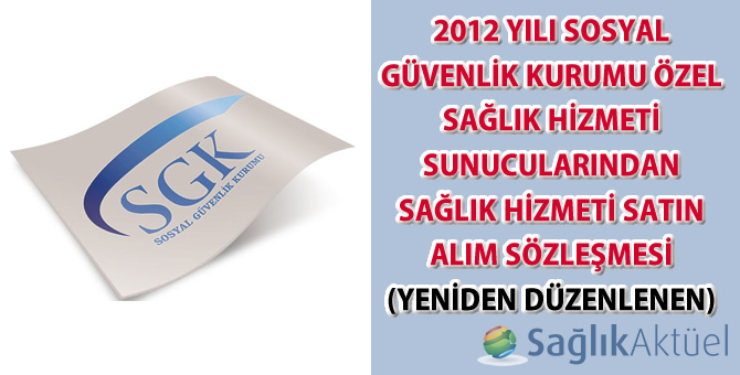“2012 Yılı Sosyal Güvenlik Kurumu Özel Sağlık Hizmeti Sunucularından Sağlık Hizmeti Satın Alım Sözleşmesi” yeniden düzenlenerek ekte yayınlanmış olup, söz konusu sözleşme metninin, sözleşme işlemlerini yürütmekle görevli Sosyal Güvenlik İl Müdürlüklerine başvurularak 31.12.2015 tarihi mesai saati bitimine kadar imzalanması gerekmektedir.