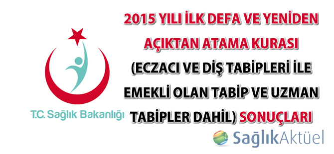 2015 yılı ilk defa ve yeniden açıktan atama kurası (Eczacı ve diş tabipleri ile emekli olan tabip ve uzman tabipler dahil) münhal kadrolar için tıklayınız