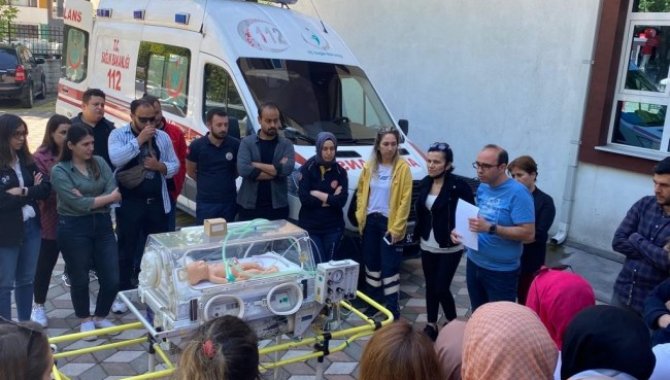 Bu kapsamda, Sağlık Müdürlüğü Acil Sağlık Hizmetleri Başkanlığı koordinasyonunda acil sağlık hizmetlerinin sunumunda görevli sağlık personeline, ambulansta sağlıklı doğum eylemini gerçekleştirmeleri, yenidoğanın ilk bakımı ve gebelerin taşınmasıyla ilgili bilgi verildiği kaydedildi.