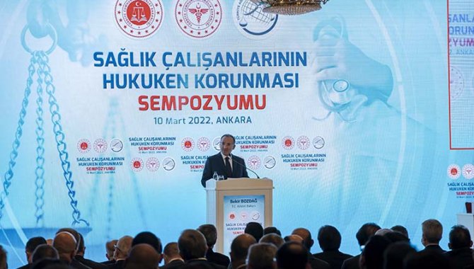 Adalet Bakanlığı, Sağlık Bakanlığı ve Türkiye Adalet Akademisince Ankara'da bir otelde düzenlenen "Sağlık Çalışanlarının Hukuken Korunması Sempozyumu"na Adalet Bakanı Bozdağ, Sağlık Bakanı Fahrettin Koca, yargı mensupları, sağlık çalışanları ve çok sayıda davetli katıldı.