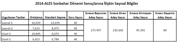 2014 Akademik Personel ve Lisansüstü Eğitimi Giriş Sınavı (2014-ALES) Sonbahar Dönemi:Sınav Sonuçlarının Açıklanması
