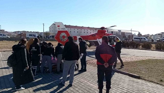 Sivas'ın Şarkışla ilçesinde ayağı ampute edilen kadın, ambulans helikopterle Sivas merkezdeki hastaneye sevk edildi.