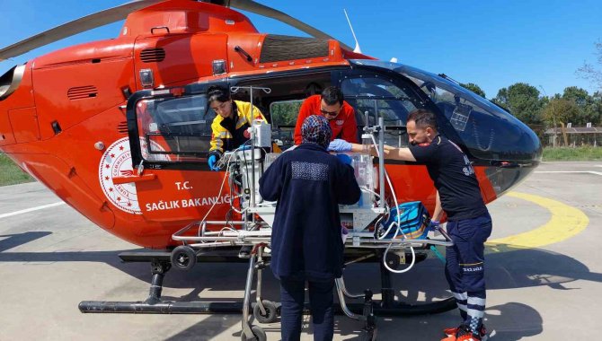 Samsun'da ambulans helikopter, yeni doğan bebek için zamanla yarıştı.