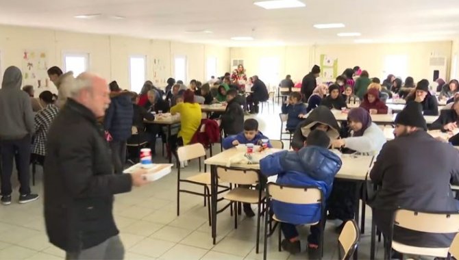 Mamak'taki sosyal konutlara yerleştirilen depremzedelere de 3 öğün sıcak yemek veriliyor.