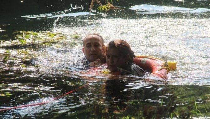 İhbar üzerine bölgeye gelen itfaiye ekipleri, ip ve can simidi kullanarak Yenenç'i kurtardı.