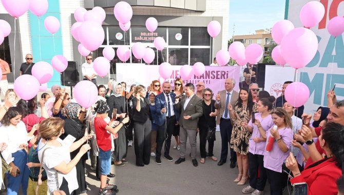 Meme kanseri farkındalık ayı etkinlikleri kapsamında düzenlenen organizasyonda, kanserde erken tanının önemi anlatılırken, pembe balonlar gökyüzüne bırakıldı.