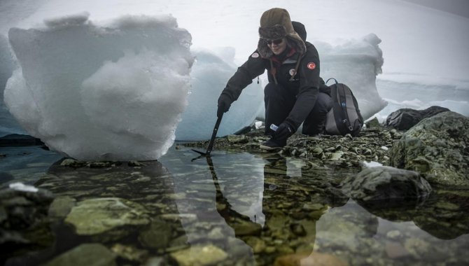 Ay, "Burası dünyanın bir çok alanına göre ekstrem fizikokimyasal habitat özellikleri taşıyor ve çok düşük sıcaklıklar görülebiliyor. Besin miktarı çok az, ben de burada Uludağ Üniversitesi Veterinerlik Fakültesi’nde ki arkadaşlarımla hazırladığımız projede yeni aktinobakteri türlerini keşfedip bu aktinobakteri türlerinin akuakültürde probiotik olarak kullanılabilirliğini, patojenlere karşı antimikrobiyal madde üretim potansiyellerini keşfetmeyi amaçlıyorum’ dedi.