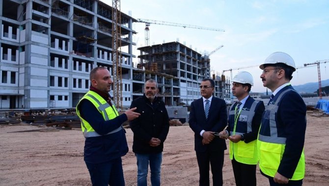 Aksoy ve beraberindeki heyet, Efeler ilçesi Şevketiye Mahallesi'nde 140 bin metrekare alanda yapım çalışmaları süren Aydın Şehir Hastanesi inşaatındaki şantiyeyi gezerek, yetkililerden bilgi aldı.
