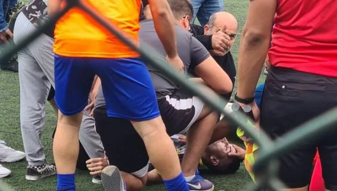 Demirci Gençlik takımının sol bek oyuncusu Hüseyin Kaya, 20. dakikada taç atışı kullanırken yere yığıldı.