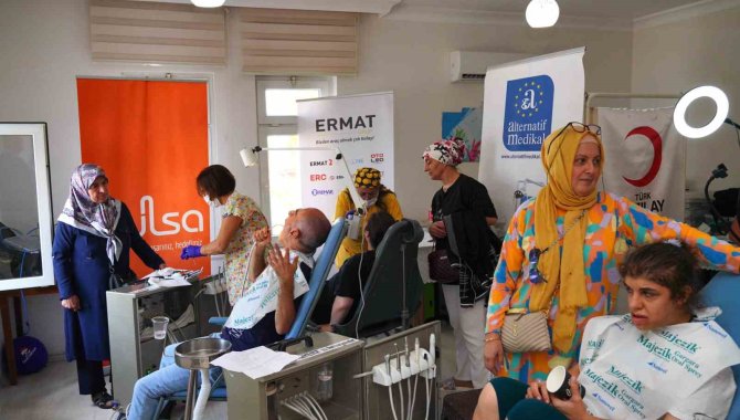 4 gün boyunca devam edecek diş sağlığı hizmeti kapsamında Türk Kızılay Balıkesir İl Başkanı Mustafa Burak Kelemençe, Ayvalık Şube Başkanı Mehmet Anıl Okyar, Engel Tanımayan Diş Hekimleri Derneği Başkanı Prof. Dr. Ertuğrul Sabah'ın katılımıyla Ayvalık Belediyesi Özel Çocuklar Eğitim Evi'nde gerçekleştiriliyor.