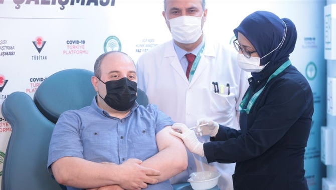 Aşı olduktan sonra yaptığı açıklamada Varank, platform çatısı altında geliştirilen VLP aşısının Faz-1, yani insan denemelerine geçildiğini anımsattı.