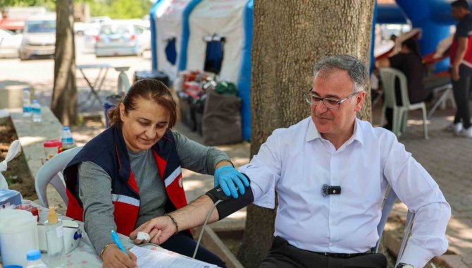 Belediyeden yapılan açıklamaya göre, Özdoğan, Hacılar ilçesi Cumhuriyet Meydanı'nda kurulan kan bağışı çadırını ziyaret etti.