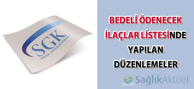 5510 sayılı Sosyal Sigortalar ve Genel Sağlık Sigortası Kanunu gereği oluşturulan “Ödeme Komisyonunun Çalışma Usul ve Esasları Hakkındaki Yönerge”nin 10 uncu maddesi, Sağlık Uygulama Tebliği’nin 4.4.1 ve 4.4.2. maddeleri gereği “Bedeli Ödenecek İlaçlar Listesi”nde yapılan düzenlemeler ekte yer almaktadır.