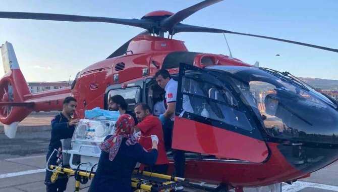 Bingöl'de 36 haftalık olarak dünyaya gelen bebek, geçici takipnesi tanısı nedeniyle ambulans helikopterle Elazığ'a sevk edildi.