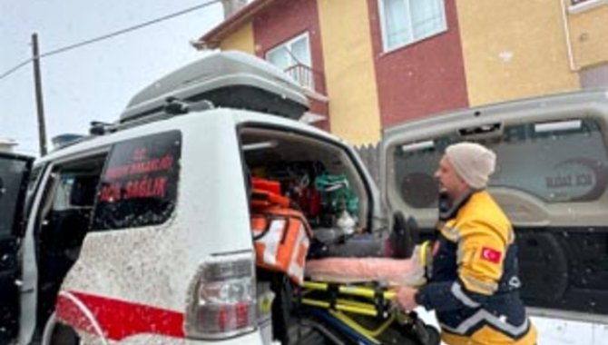 Yoğun kar yağışı ve tipi nedeniyle normal ambulansla köye ulaşamayan ekipler, paletli ambulans kullandı.