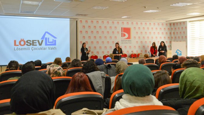 Rektörlükten yapılan açıklamaya göre, Fen Fakültesi Konferans Salonu'nda gerçekleştirilen, LÖSEV yetkilileri Tuğçe Yasak Koçay, Sema Nur Cin, Fatoş İnceler ile Doğa Deniz Güler'in konuşmacı olarak yer aldığı programda lösemiye ve hastalığa ilişkin sosyal hizmet projelerinin önemine dikkat çekildi.