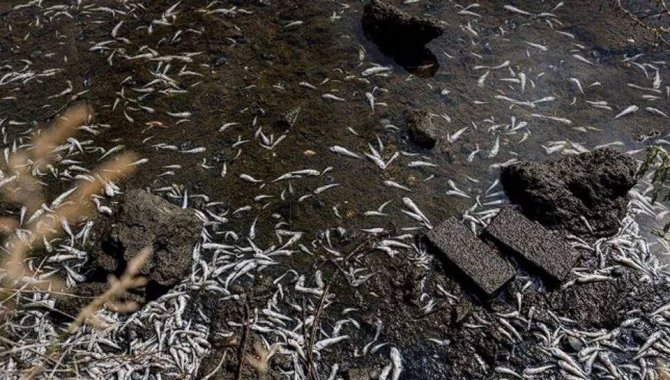 Bazı görüntülerde, zehirli suda nefes alamayan balıkların topluca kafalarını su yüzeyinde tutarak nefes almaya çalıştıkları görüldü.