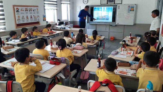 TOKİ İlkokul öğrencilerini ziyaret ederek derslere katılan Çankırı Karatekin Üniversitesi (ÇAKÜ) Mühendislik Fakültesi Gıda Mühendisliği Bölümü Öğretim Üyesi Doç. Dr. Hüdayi Ercoşkun, çocuklara gıdaların vücut sağlığına etkileri, dengeli beslenme alışkanlıkları ve çevreyi koruma bilinci konularında bilgi verdi.