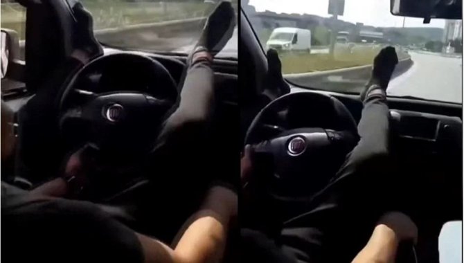 İstanbul Trafik Denetleme Şube Müdürlüğü sivil trafik ekipleri, sosyal medya ve ulusal basına yansıyan görüntülere yönelik yaptığı çalışmada, 5 Mart'ta Çekmeköy Şile yolu üzerinde seyir halindeyken ayaklarıyla direksiyonu kullanarak tehlikeli davranışlarda bulunan 33 DMF 64 plakalı araç sürücüsünün M.Ş.A. olduğunu tespit etti.