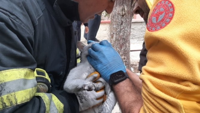 İtfaiye ekipleri, soğutma çalışmaları yaptığı sırada evin içinde hareketsiz yatan bir kedi fark etti.
