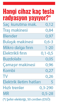 Elektromanyetik kirliliğin olumsuz tesirleri, dalganın frekansına, güç ve alan yoğunluğuna, kaynağın uzaklığına, maruz kalma süresine, etkilenenin ölçülerine ve elektriğin özelliklerine göre değişiyor. Mesela, ortalama bir baz istasyonunun yaydığı radyasyon 10 volt/metre. Fakat ütününki 50 volt/metre. Bu durumda ‘Ütü daha zararlıdır’ demek yanlış. Çünkü cep telefonundan kaynaklanan radyasyonun sınır değeri 41 volt/metre iken ütüde bu rakam 5000 volt/metre. Yani her kaynağı, kendi güvenlik limiti ile karşılaştırmak gerekiyor. Üstelik âdeta bir organ hâline gelen cep telefonunun sinyaline maruz kalma süresi, diğer cihazlarla karşılaştırılamayacak kadar uzun. Bu noktada özellikle hamileler ve çocuklar daha yüksek risk grubunda bulunuyor. Elektromanyetik kirlenme duyularla hissedilmiyor. Vücut ısısını 0,5 ila 2 derece arasında artırıp dengeyi bozuyor. Beyinde 0,5-120 Hz arasında oluşan beyin dalgaları aynı zamanda elektromanyetik alanlar. Beyin dalgaları, işlevleri yönüyle 6 banda ayrılıyor. Bu dalgalar beyinde gerçekleştiğinde insan; korku, sevinç, düşünce gibi ruh hâllerini yaşıyor. Ev içinde kullanılan tüm elektrikli cihazların 50 Hz frekanslı olması sebebiyle, verdikleri radyasyon beyin dalgaları ile eşleşebiliyor.