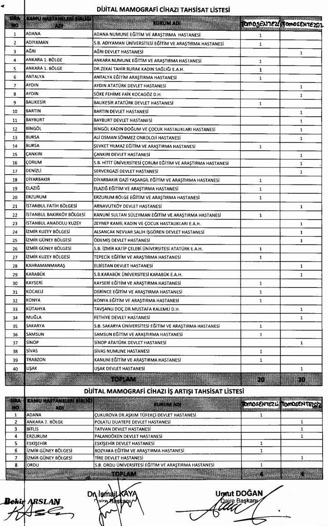 2014 Merkezi Alım kapsamında planlanan Dijital Mamografi Cihazına ilişkin ihale işlemleri tamamlanarak sözleşme imzalanmıştır.