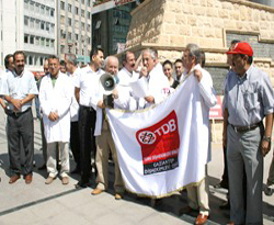 Türk Dişhekimleri Birliği (TDB) Genel Başkanı Murat Akkaya ile meslek odalarının yöneticileri, sorunlarının dikkate alınması istemiyle Sağlık Bakanlığı önünde basın açıklaması yaparak siyah çelenk bıraktı.