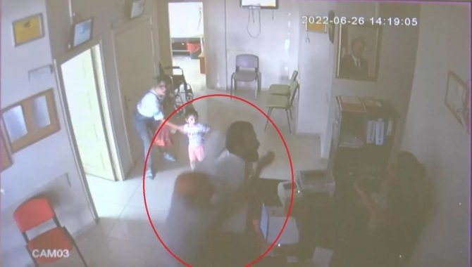 Gökmen ve Yıldırım'ın diğer sağlık çalışanları tarafından doktor odasına alınmaya çalışıldığı yer alan görüntülerde, 2 kişinin kapıyı tekmeleyerek kırdığı yer alıyor.