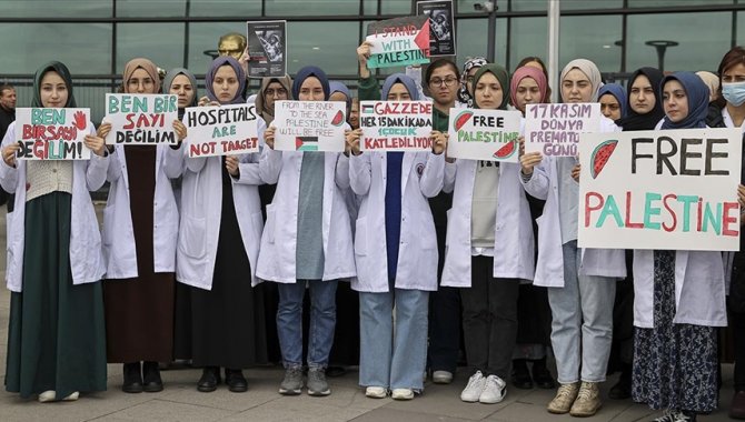 "Dünya Prematüre Günü" dolayısıyla Göztepe Prof. Dr. Süleyman Yalçın Şehir Hastanesi'nin poliklinik girişinde bir araya gelen doktorlar, "Çocuklar uyurken sessiz olunur, ölürken değil", "Gazze'de her 15 dakikada 1 çocuk katlediliyor" yazılı dövizler taşıdı.