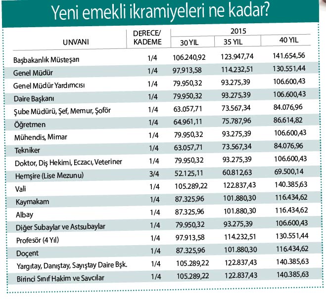 MEMURLARA bayram ettiren Anayasa Mahkemesi'nin 25 Aralık'ta aldığı karar dün Resmi Gazete'de yayımlandı. Karar memurların emekli ikramiyesinin hesaplanmasında 30 yıl sınırının Anayasa'nın 2., 10. ve 60. maddesine aykırı olduğunu ve iptalinin gerektiğini ifade ediyor. Yani dün itibarıyla 30 yıldan fazla çalışması bulunan memurlar emekli olduklarında emekli ikramiyelerini 30 yıl üzerinden değil, hizmet yıllarının tamamı üzerinden alabilecek. Bu durum özellikle 40, 45 ve 50 yıl hizmeti bulunan pek çok memuru sevindirecek. Çünkü emekli ikramiyesinde ciddi bir rakam farkı söz konusu olacak ve emeklinin eline daha yüksek ikramiye geçecek. 40 yıllık hizmeti olan bir genel müdür bu düzenleme öncesi en fazla 106 bin TL emekli ikramiyesi alabiliyorken, ikramiyesi 141 bin TL'ye yükselecek. İkramiyeler orta dereceli kademelerdeki memurlar için yıl bazında 2.050 TL ila 3.000 TL, yüksek dereceli memurlarda 3.500 TL ila 4.000 TL arasında fark oluşturacak